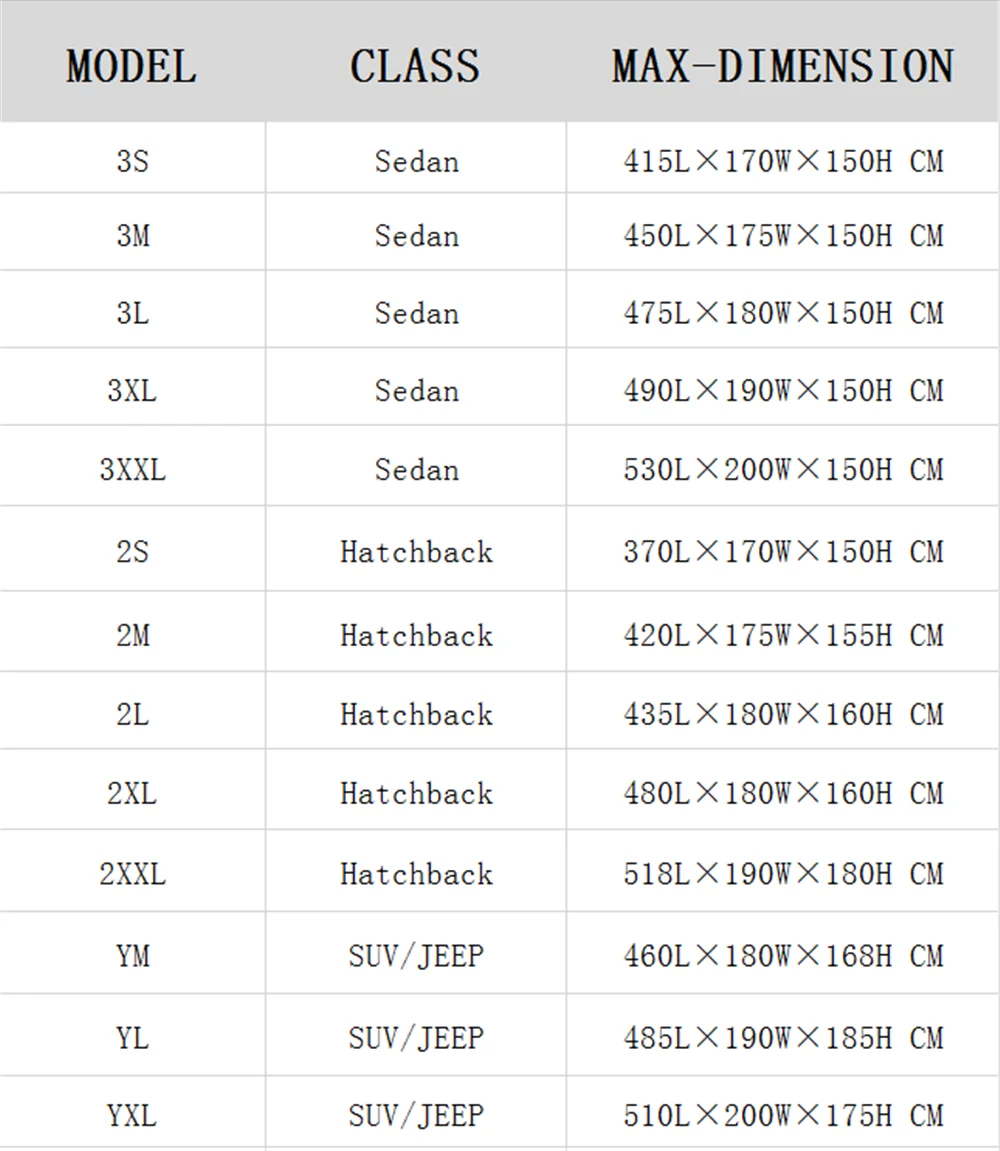 - Confirm the car model is sedan hatchback or suv,Choose as car length .